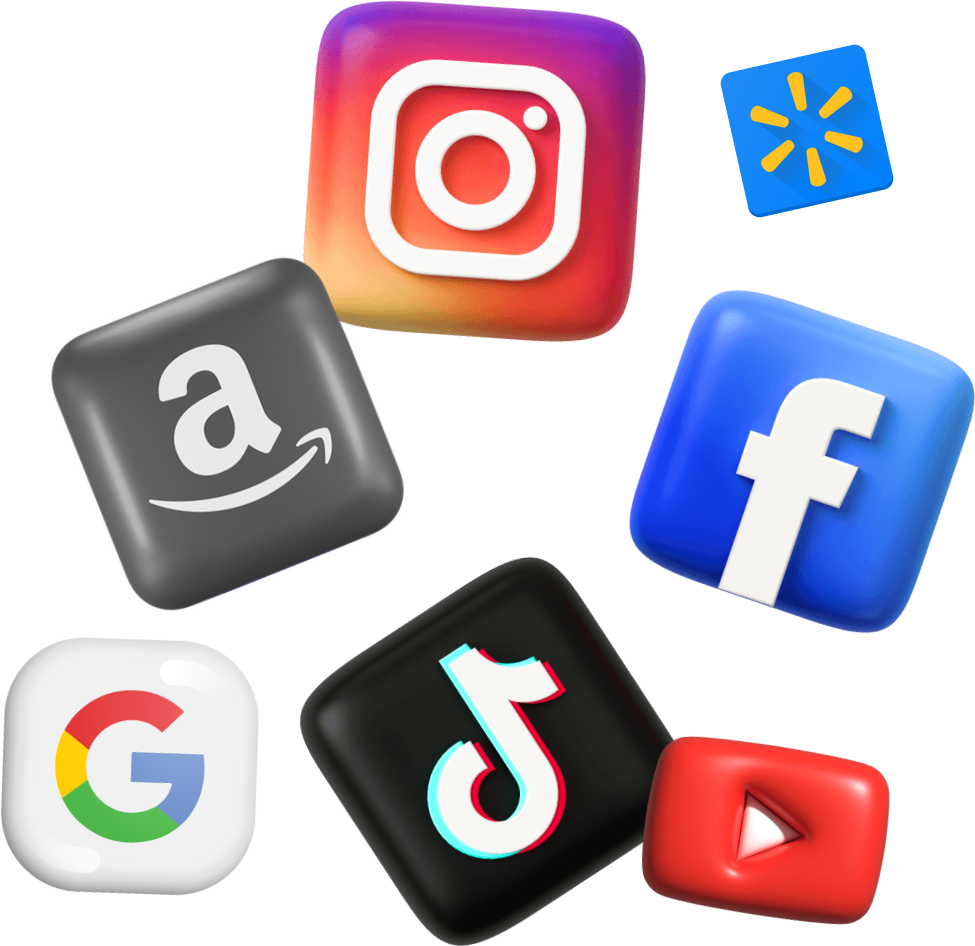 We craft effective Google, Youtube, Facebook/Instagram, Tiktok, Amazon, and Walmart marketing campaigns, Social Media Platforms, we can help you reach your target audience by creating engaging content and targeted ads that deliver results. Our Amazon PPC and Walmart Marketing services are designed to help you reach a wider audience and increase your sales on these popular marketplaces.